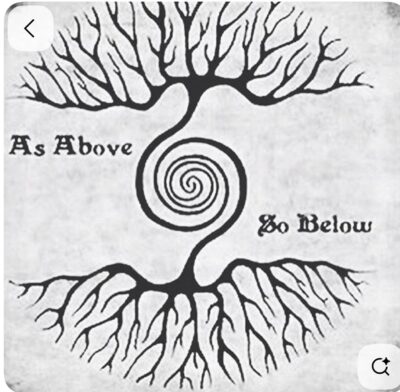 « Ce qui est en Haut est comme ce qui est en Bas », ce qui signifie que ce qui se produit dans le macrocosme (l’univers) se reflète dans le microcosme (l’humanité).